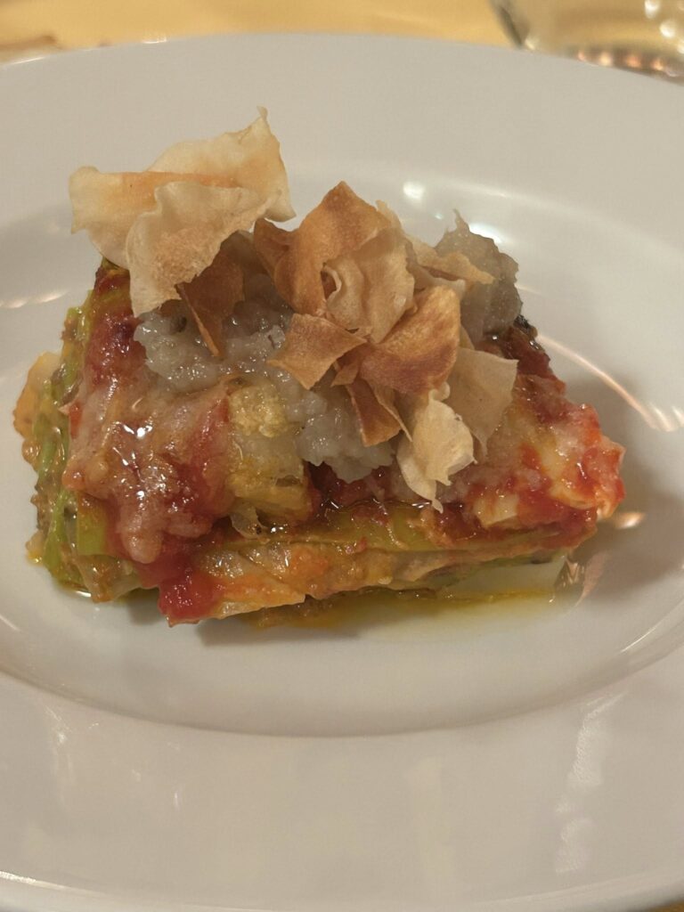 ジャルディニエラってピエモンテ州の野菜の酢漬けではないの? と最初思ったのですが、同州はよくよく見るとピエモンテ、トスカーナ、ヴェネト、マルケ州と接しているので、シェフによると、それぞれの州の郷土料理に似たものがあるのだそうです。